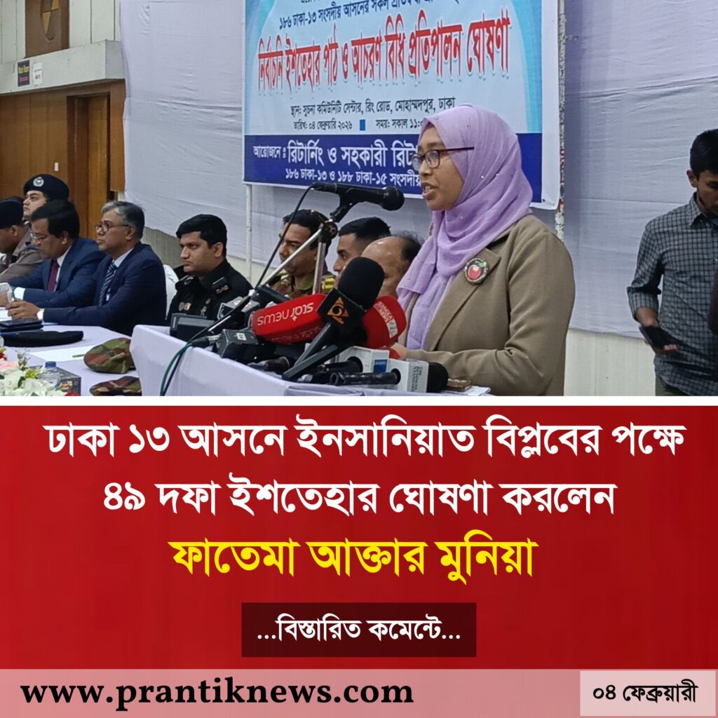 ইনসানিয়াত বিপ্লব মনোনীত -ঢাকা ১৩ আসনের প্রার্থী ফাতেমা আক্তার মুনিয়া